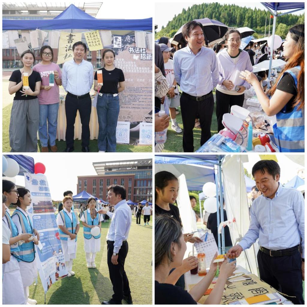 开幕式后,学院领导及各系教师走进社团展示区,详细了解各社团活动开展情况,与同学们亲切互动,感受演讲口才、体验急救展示、领略非遗文化和书法魅力等,并对社团建设与发展提出宝贵建议。