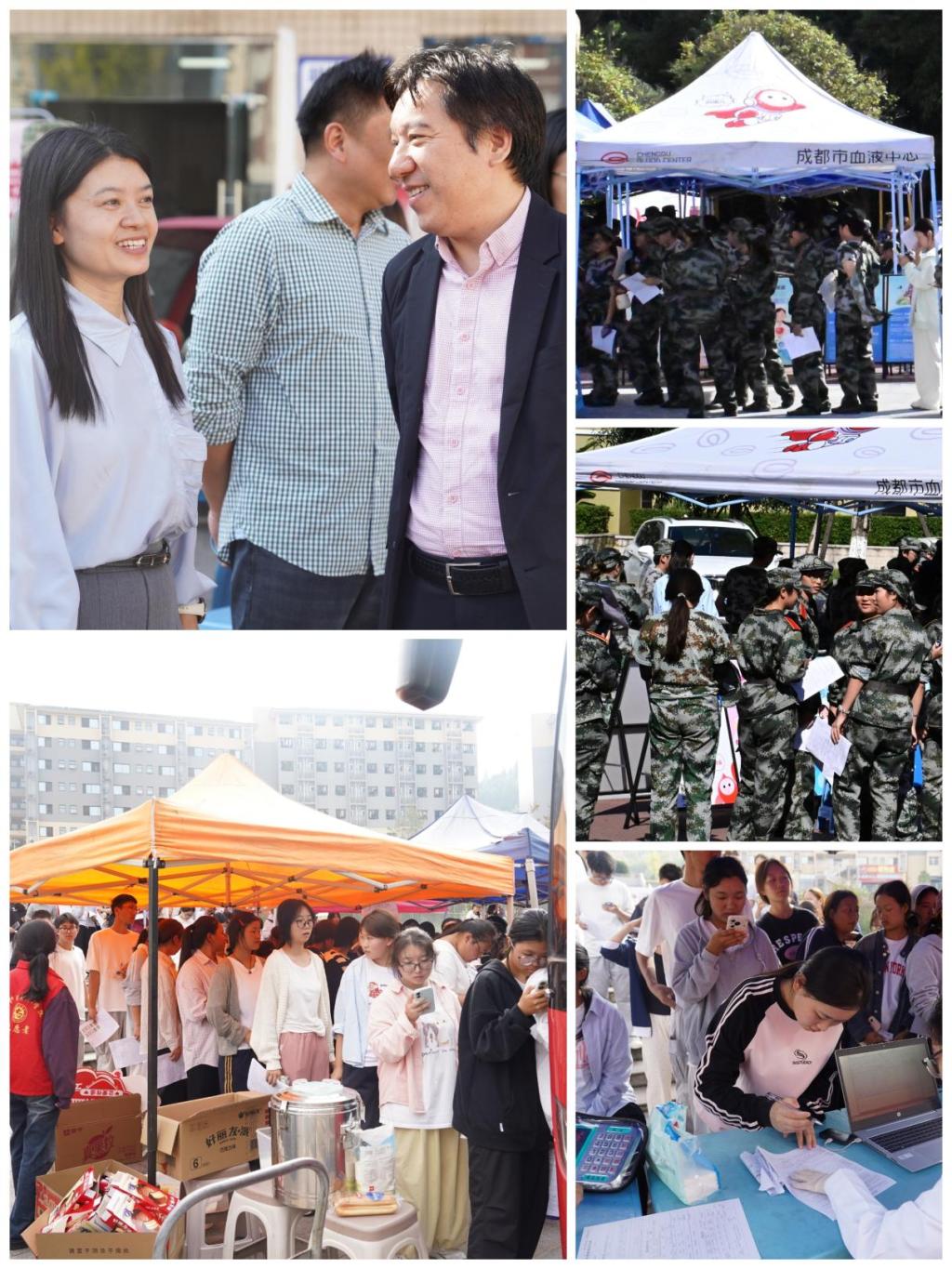 为积极响应国家对无偿献血事业的号召,进一步增强学院师生的社会责任感,10月15日,学院团委联合成都市血液中心与德阳市中心血站,首次于军训期间在两校区同步开展“献血车进校园”无偿献血公益活动。两校区共计823名师生参与了本次献血活动,献血量达238000ml。