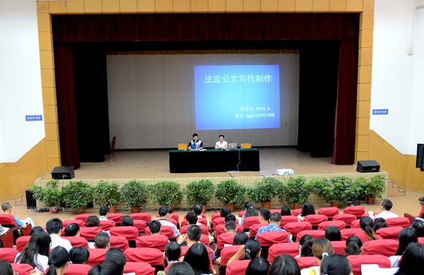 胡老师结合自身工作实际和个人体会,围绕法定公文和非法定公文的常规要求进行讲解,从文种、规则、格式、程序、写作等方面讲授了如何写作制作法定公文,用实例讲解工作计划、工作要点、工作总结、报告等7个常用公文撰写的写作思维和技巧。胡老师授课理论与实例相结合,深入浅出、语言生动,气氛活跃。