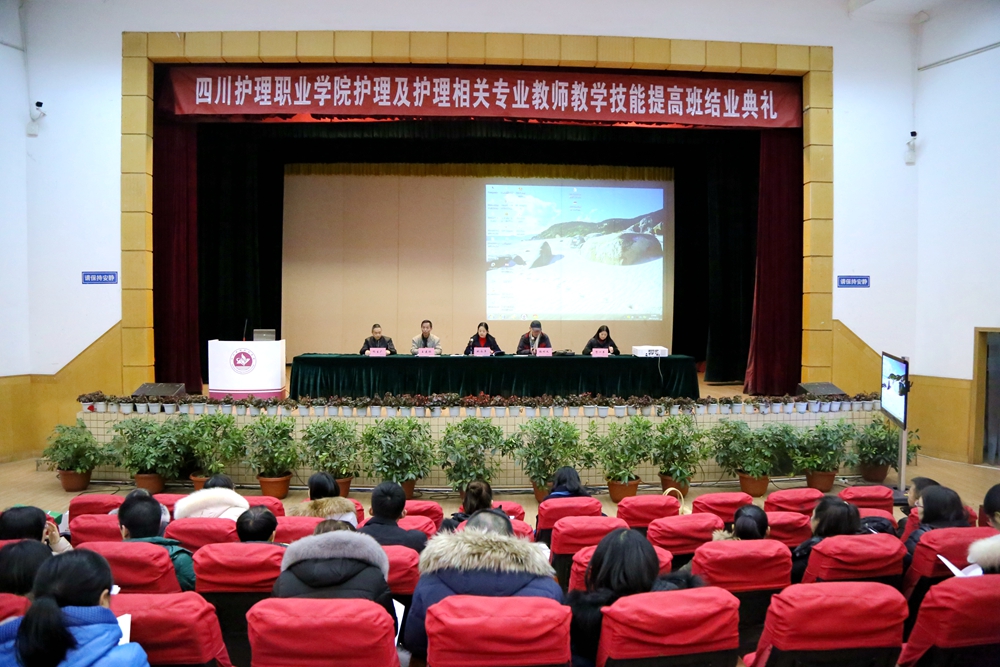 2017年1月11日下午,我院护理及护理相关专业教师教学技能提高班结业典礼在学院学术报告厅举行。我院副院长姚永萍、教务处和人事处处长及川大继教部老师出席典礼,由川大继教部主任张明义主持结业典礼。