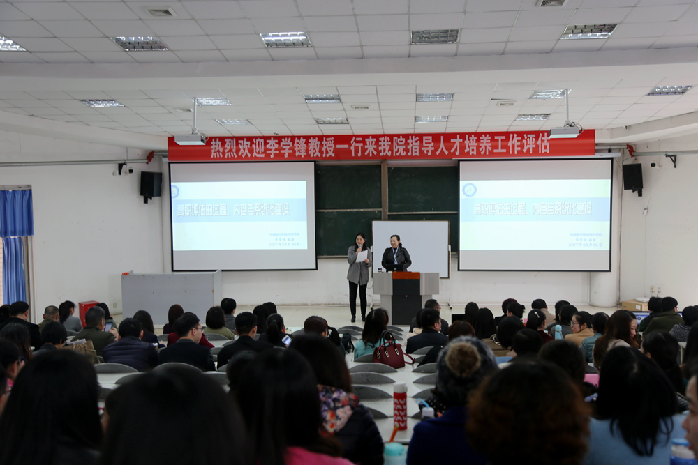 3月30日下午,高职教育评估专家、国家级教学名师李学锋教授及其团队来我院作人才培养工作评估的专题培训会。张先庚院长、陈劲松副院长、姚永萍副院长、全体中层干部、专兼职教师、辅导员等近200人参加了培训会。会议由姚永萍副院长主持。