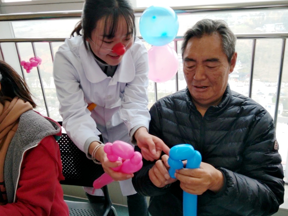 2017年11月25日下午,我院”零距离 小丑医生公益社”志愿者前往龙泉驿区第一人民医院肿瘤科住院病房的示教室。寒风四起的午后,开始了病房送欢乐之旅。