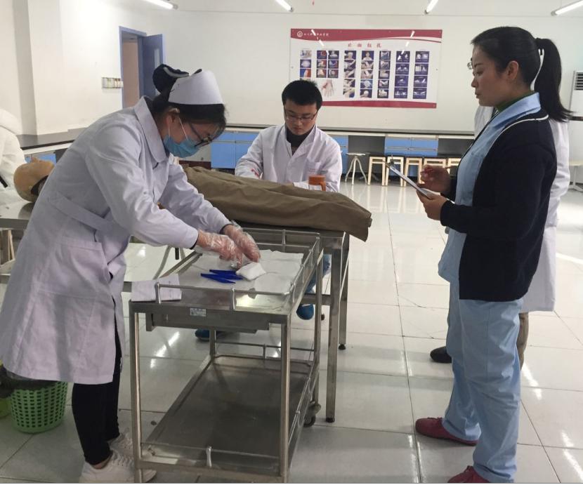 为全面考察学生的职业素养、临床思维能力、护理基本技能与操作水平,检验现代学徒制班级教学成效,推进护理技能教学改革,12月28日,我院护理系对2016级、2017级现代学徒制班共计80名同学进行了护理技能考核。
