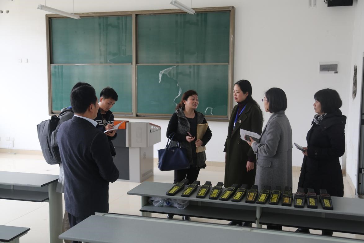 检查组一行首先对我院试卷保密室、监控室及考场等进行了实地检查,并主要围绕大学英语标准化考场建设后的四大功能系统,即考场录像监控系统、入场监测系统、考场防作弊屏蔽系统、考点应急指挥及考试综合业务系统,进行逐一指导和落实。