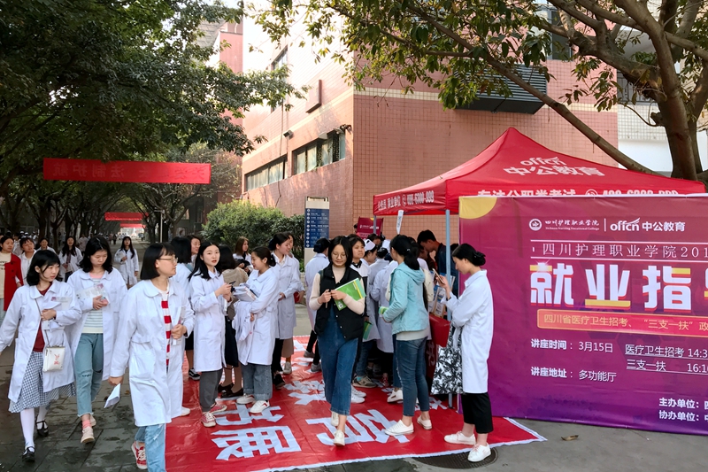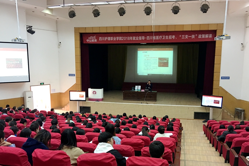 为营造鼓励高校毕业生到基层工作的良好氛围,大力加强就业指导和就业服务,拓展学生就业渠道,增强学生就业能力,提升学生初次就业率与就业质量,3月15日,我院邀请中公教育研究院在成都校区学术报告厅举办了“76net必赢线路检测中心2018年就业指导讲座--四川省医疗卫生招考、三支一扶政策解读”讲座、中公教育高校巡回书展免费赠书等活动。800余名学生参加了本次讲座。