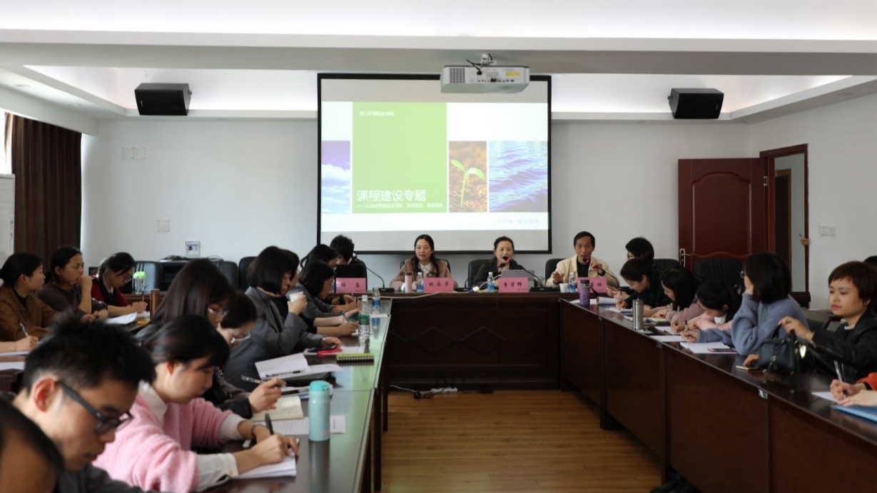 为进一步巩固前期我院教师在课程说课方面所取得的培训成果,深入推进评建工作,2018年3月23日,我院在成都校区召开课程说课专题培训指导会,特邀高职教育评估专家、国家级教学名师李学锋教授和杨蓉副教授莅临现场指导。各系(部)主任、教学科研科科长及干事、教研室主任及秘书、迎评工作专家小组成员参加了培训会。会议由评估办副主任王建鹏主持。