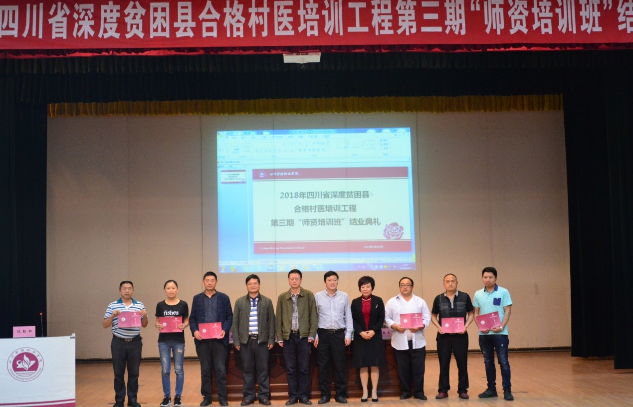 3月25日-4月27日,由四川省卫生计生委主办,我院承办的2018年四川省深度贫困县合格村医培训工程“师资培训班”圆满完成三期培训。全省45个深度贫困县共计268医务工作人员接受该项培训,265名学员顺利通过了理论和实践操作考核,取得四川省合格村医师资培训结业证。共评选出优秀团队7个,优秀学员40名。