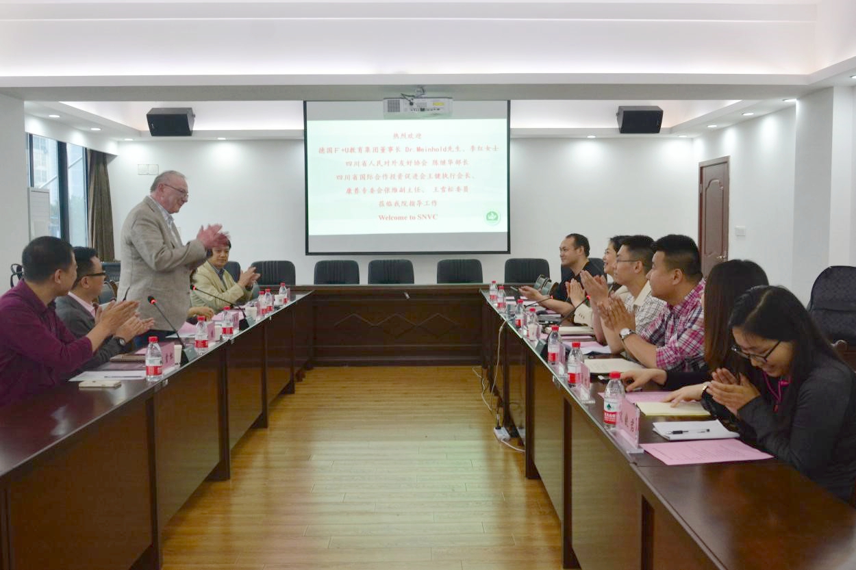 5月9日,德国F+U教育集团董事长麦霍德一行到访我院,并举行了中德友好合作交流座谈会议,学院副院长姚永萍、四川省国际投资促进会会长王健及学院相关部门负责同志出席会议。