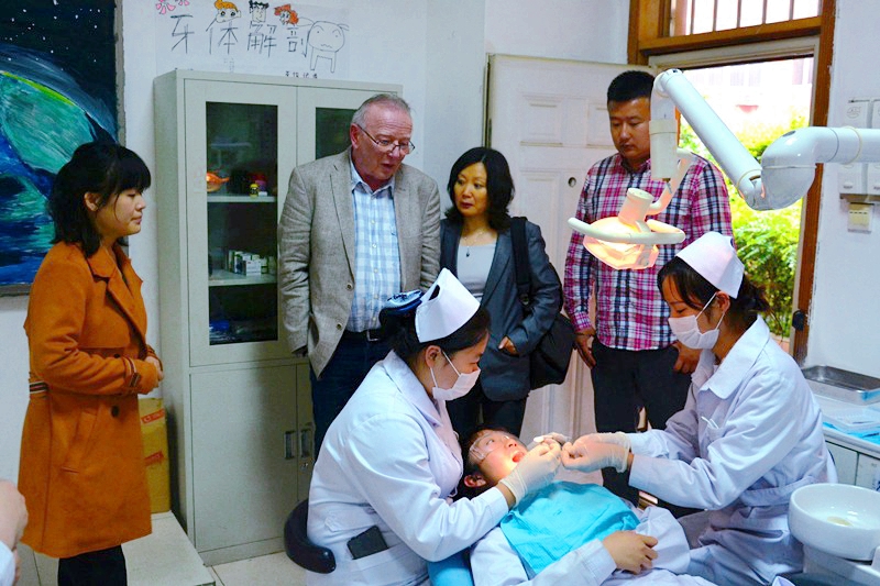 会后,在院领导和继续教育部工作人员的陪同下,F+U来访人员参观了实习中心实验室、虚拟仿真中心、德标口腔修复工艺实验室并对学生实践操作进行了观摩。