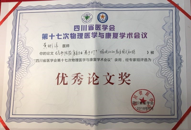 本次学术交流会议由四川省医学会主办,四川省医学会物理医学与康复专业委员会、凉山州中西医结合医院承办。此次学术论文交流,经过紧张激烈的专家评审和现场汇报、壁报交流,在收录的210篇学术论文中,我系张姗姗老师选送的“基于四维一致性(FOCA)的针刺胫骨前肌运动点对脊髓损伤(SCI)脑兴奋性的影响”在本次学术大会论文交流中获得一等奖。黄彬洋老师选送的“高职院校康复专业‘基于OT+’模块化的教育模式初探”在论文壁报交流中获得优秀奖。
