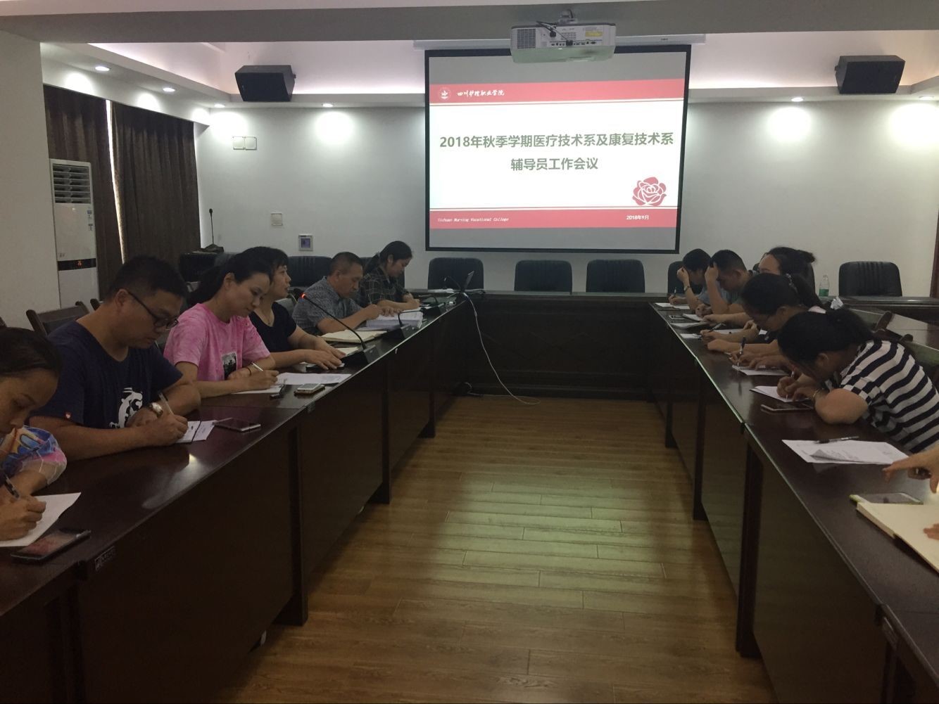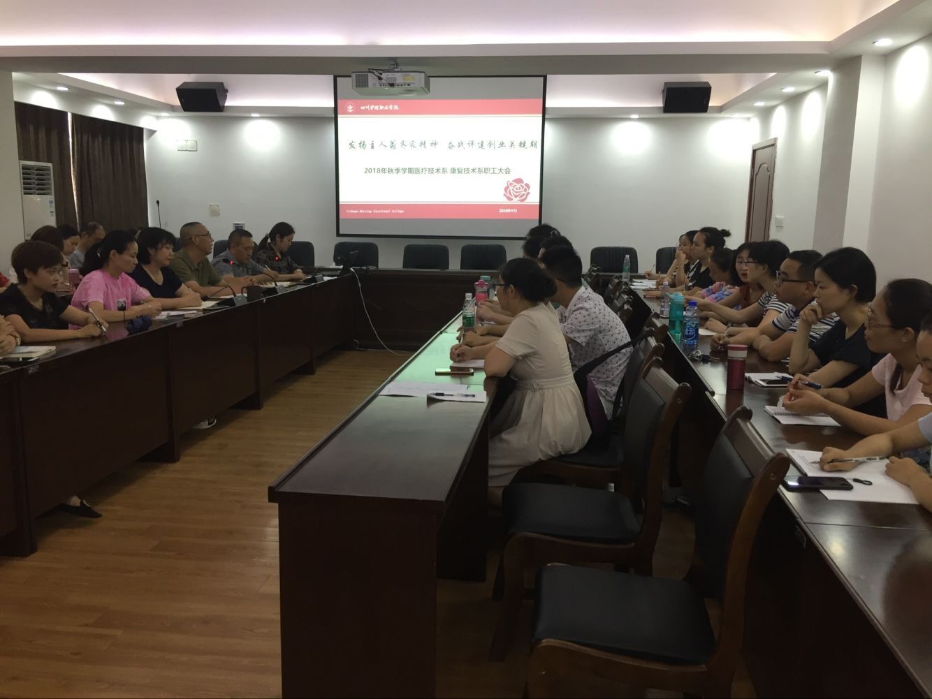 9月2日,医疗与康复技术系2018年秋季学期教职工大会在龙泉校区综合楼三楼教师发展中心举行。全体专兼职教师、行政管理人员和辅导员参加。