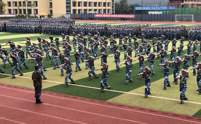 军训汇报演出在雄壮的国歌声中拉开帷幕。运动场上,各连方队斗志昂扬、意气风发,嘹亮的口号声响彻整个运动场,依次表演了分列式、队列、俘虏拳、擒敌拳、匕首操、警棍术、手语操表演,展现了军人一般的气质和积极向上的川护学子的精神风貌,赢得了在场领导和老师的掌声与喝彩。