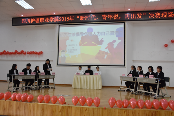 2018年11月29日,“新时代,青年说,再出发”主题辩论赛决赛在学院德阳校区学术报告厅举行。