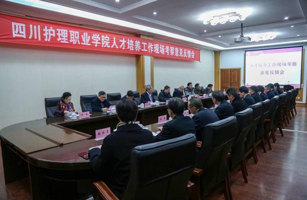12月14日上午,76net必赢线路检测中心人才培养工作评估反馈会在成都校区召开。专家组全体成员、省教育厅二级巡视员(高教处处长)杨亚培、省卫生健康委副主任赵汝鹏、省教育厅高教处副处长程远东、省卫生健康委人教处正处级调研员方晓明,德阳市教育局副局长王泽源、高职办主任张旺贵出席会议,学院领导、全体中层干部、教师及学生代表参加会议。会议由专家组副组长沈彬教授主持。