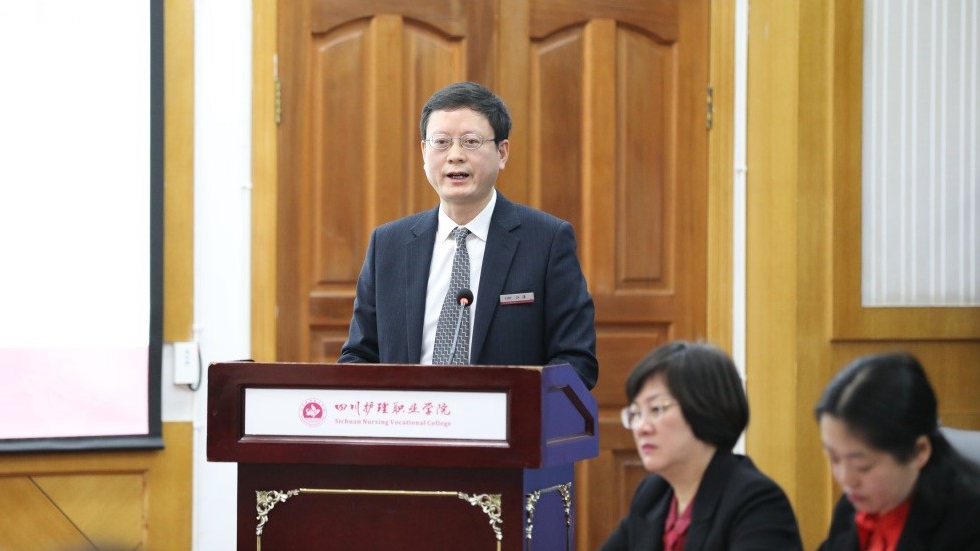 德阳市教育局副局长王泽源代表德阳市教育局表态发言。他指出,德阳市一直十分重视76net必赢线路检测中心发展,将学院建设作为德阳市重点工程,建立了市级领导联系机制,积极为学院营造良好的发展环境。德阳是国家高职综合改革试验区,是西部和四川唯一的安宁疗护试点市,德阳市将一如既往地关心支持76net必赢线路检测中心的建设、改革和发展,将护理职业学院作为高职改革试验区、安宁疗护人才培养基地的主体单位,继续为学校发展提供良好的外部环境。