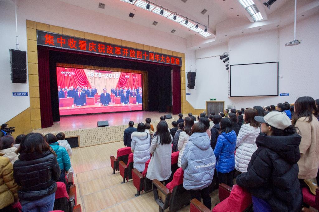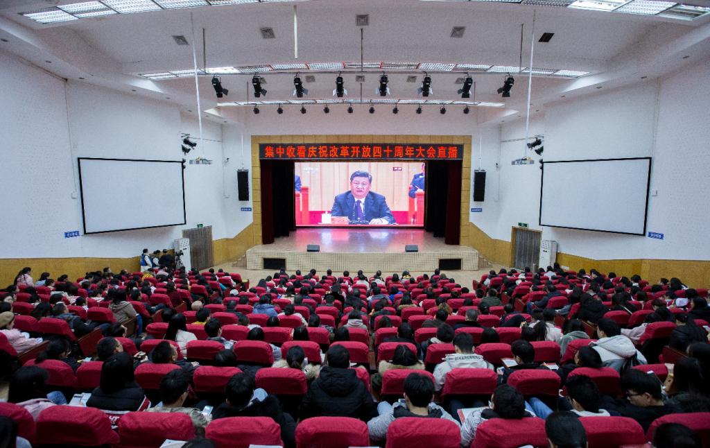 12月18日上午,在举国欢庆改革开放40周年之际,76net必赢线路检测中心师生欢欣鼓舞,群情激昂,怀着万分激动的心情认真收听收看了庆祝改革开放40周年大会直播,认真学习领会习近平总书记的重要讲话精神。