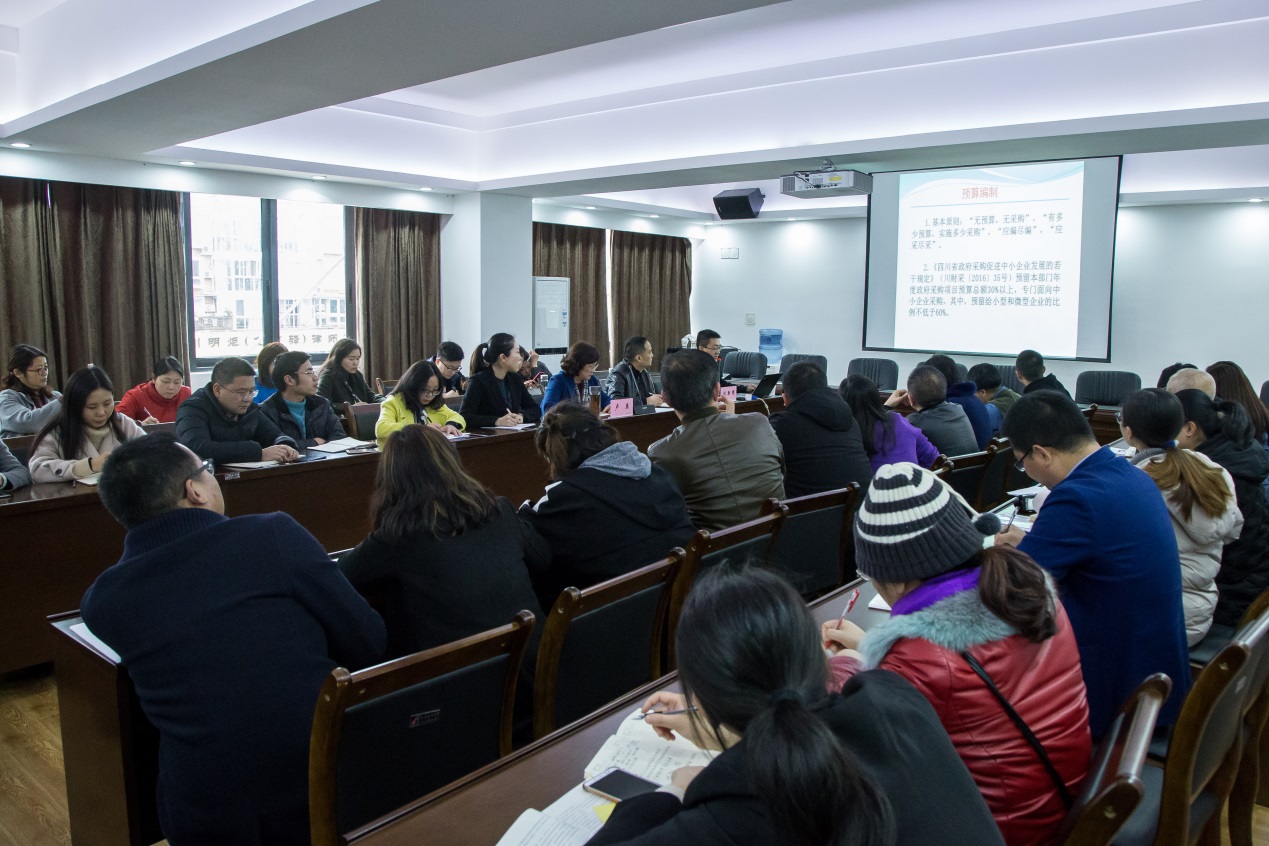 为加强学院政府采购工作的组织领导和协调,切实做好学院采购工作,3月13日,学院在成都校区召开2019年学院采购工作培训会,邀请省卫生健康委规划财务处张新耀老师作政府采购工作培训。学院党委委员、副校长卢燕出席本次会议,各部门负责人及采购工作人员参加培训,会议由国有资产处副处长刘锋主持。