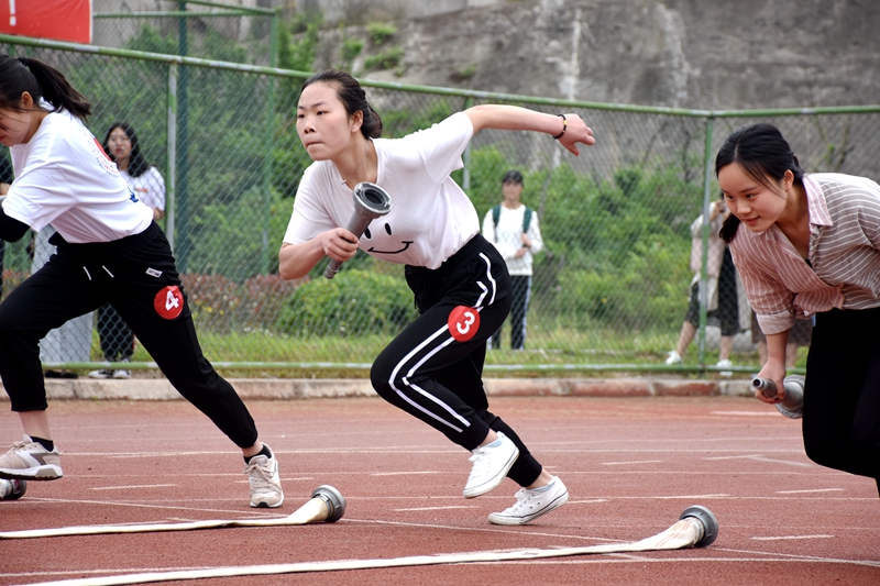 本次运动会在成都校区与德阳校区分别进行,共有135个班级、2281名运动健儿积极参与。运动会开幕式精彩纷呈,彩旗伴着矫健的步伐迎风招展,一张张青春的笑脸在美丽的校园中绽放,各系各班级的方队表演紧扣专业特色、独具匠心,特别是医疗技术系与康复技术系带来的快闪表演《我和我的祖国》更是点燃了全场师生的爱国热情,让同学们感受到学好专业知识、锻炼强健体魄就是爱国最具体的表现。比赛中,运动员们在赛场上激情飞扬、奋力拼搏,一个个精彩的瞬间令人难忘。跳远跳高中奋力一跃的爆发,中长跑中坚忍不拔的毅力,接力赛中的紧张刺激、团结协作,此起彼伏的加油,一浪高过一浪的欢呼,奋力拼搏的激情,手捧奖状的欣喜,无不让昭示着运动会的魅力。在田赛、径赛22个项目的角逐中,共产生团体奖47个,2017级高职护理4班在男子100米消防接力比赛中以24秒88的好成绩打破了去年由他们自己创造的校纪录,再一次突破自我。