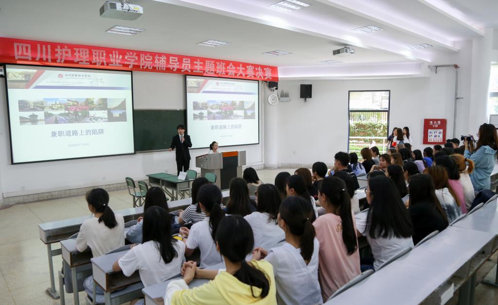 本次辅导员主题班会大赛由学工部牵头组织,从3月18日开始,历时两个半月,共分为初赛和决赛两个阶段。初赛由各系部组织,经过认真细致的评选,共推选出13名辅导员参加决赛。学院分别于5月23日、5月30日在成都校区,6月5日在德阳校区组织了3场现场展示。每位参赛选手自选主题,结合年级或班级实际,围绕爱国主义、网络安全、实习就业指导、感恩教育、职业素养、团队教育、诚信教育、大学生恋爱观等方面,以丰富的内容、创新的形式实现主题班会对学生成长成才中的育人效果。各辅导员采用辩论赛、誓言宣誓、情景呈现、采访视频、知识竞答、头脑风暴等方式进行主题班会各环节的设计。经过激烈角逐,通过主题班会文案评分和现场展示评分,大会最终评选出一等奖1人,二等奖3人,三等奖5人,优秀奖4人。