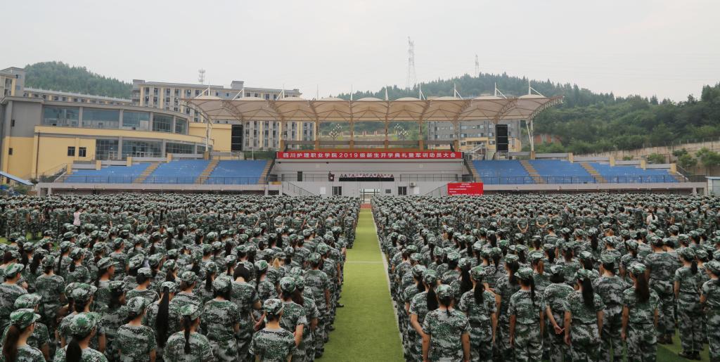 2019年8月30日,2019级新生开学典礼暨军训动员大会在德阳校区运动场举行。学院领导、部分职能部门负责人、各系部主任、书记、军训部队官兵、学院教师代表、2019级新生班辅导员、学生管理人员及全体新生参加。