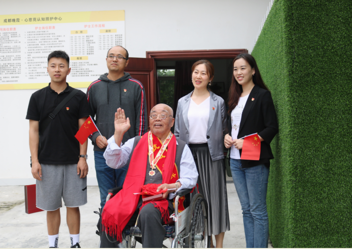9月26日下午,护理系党总支党员代表、团总支学生代表一行43人前往成都市晚霞社会养老服务中心开展“不忘初心、牢记使命”慰问抗战老兵公益活动。