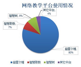 为打造高质量线上教学课堂,大部分教师采取“课程教学资源平台+网络直播平台”混合教学模式。超星学习通、智慧职教、智慧树三个平台使用较多,其中,超星学习通占比80%,访问量达131007人次;智慧树占比9%,访问人次达14090;智慧职教占比7%,访问量为12229人次;其它平台占比4%。腾讯课堂、腾讯会议、超星学习通、QQ群课堂、瞩目会议等为主要的直播答疑平台。