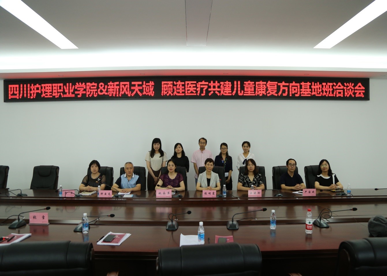 为深化产教融合,加强校企合作,创新康复治疗技术专业人才培养模式,培养儿童康复方向高素质技术技能人才,促进康复专业学生快速成长,助力精准就业,实现学校、企业、学生三方合作共赢的教学模式,2020年7月2日,学院与香港新风天域顾连医疗在成都校区召开了共建儿童康复方向创融基地班洽谈会议。学院副院长姚永萍、顾连医疗管理公司副总裁张明霞、顾连芒果科技有限公司专家团队和学院教务处、康复技术系相关人员参加会议。会议由教务处处长梁小利主持。