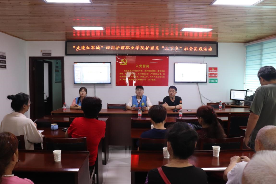 为引领大学生深入学习贯彻习近平新时代中国特色社会主义思想,落实学院实践育人的教育要求,使学生扎根中国大地了解国情民情,通过社会实践坚定理想信念、投身强国伟业,8月12日至18日,在学院老师的指导和带领下,护理系志愿者团队赴中国红军城——旺苍县东河镇开展以“永远跟党走·青春献祖国”为主题的暑期“三下乡”社会实践活动。