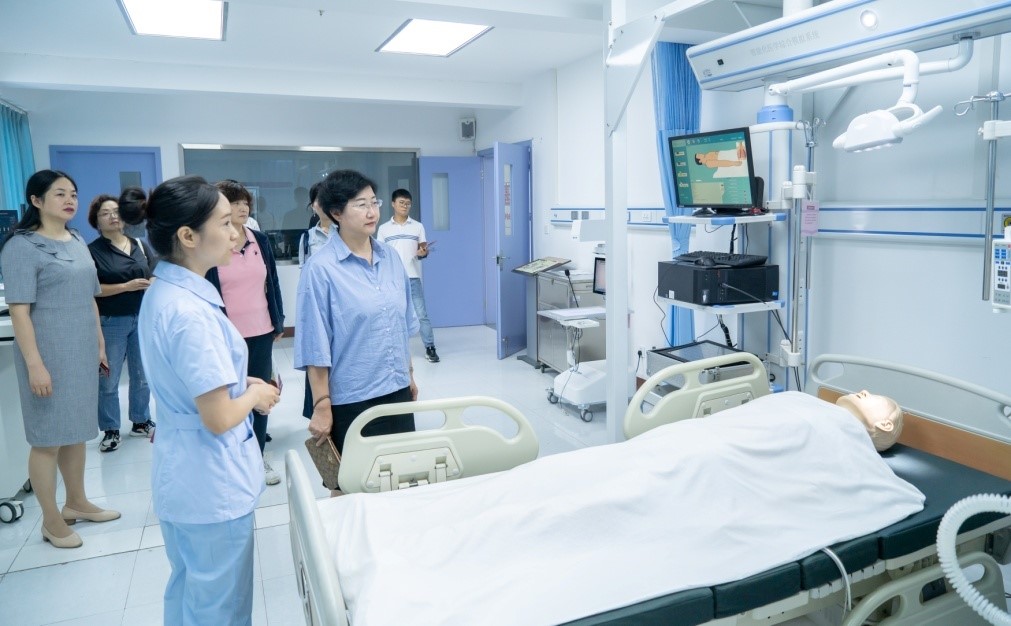 随后,黄亚励书记一行实地考察了学院教学督导中心、护理实训中心,对我院智慧实验室、虚拟仿真实训系统的建设表达了高度的赞赏。在姚永萍副院长等人的陪同下,黄亚励书记一行还来到了学院德阳校区,参观了学院智能化实验室,重点了解了3D数字人解剖系统、双目体式显微镜实验室等建设情况,体验了课后学生自主学习实验平台功能。双方各职能部门就招生就业、教学管理、师资队伍建设、实验实训建设等内容进行了深入交流和探讨。