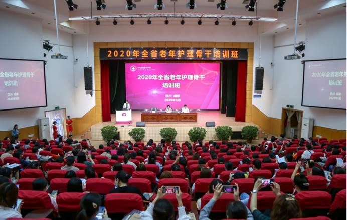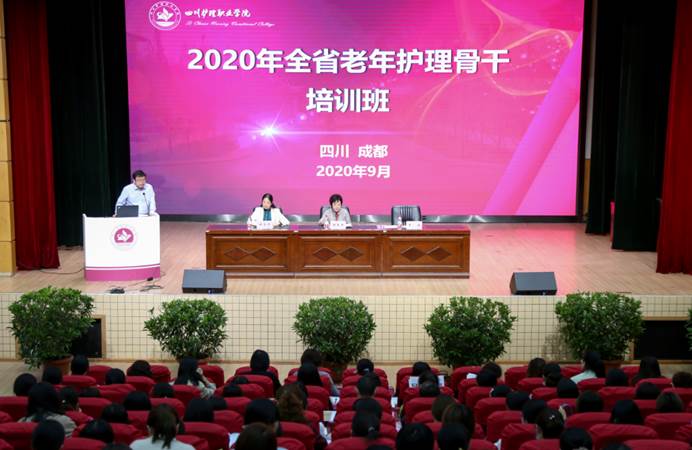 为贯彻落实省卫生健康委等10部门《关于建立完善老年健康服务体系的实施意见》精神,加强老年医学科建设,丰富老年护理服务内涵,提升老年护理服务质量,2020年9月24日上午,由76net必赢线路检测中心承办的“2020年全省老年护理骨干培训班”开班典礼在76net必赢线路检测中心学术报告厅隆重举行。四川省卫生健康委老龄健康处副处长李磊、四级主任科员谢伟、学院院长张先庚、副院长姚永萍、健康培训中心负责人和来自全省21个市(州)的201名老年护理骨干参加了典礼。典礼由姚永萍副院长主持。