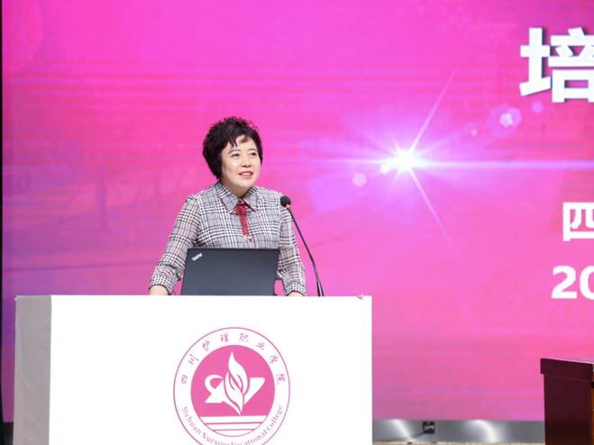 首先,张先庚院长代表学院致欢迎辞,并发表热情洋溢讲话。她指出,随着人口老龄化加剧,老年健康及护理服务问题突显,四川省卫生健康委高瞻远瞩,将我省老年健康服务重点推进。学院在省卫生健康委的关心指导下,精心准备、精选师资、精雕课程,反复论证,就是为了给在座的老年护理骨干们提供多角度的专业知识分享。张院长强调,本次培训内容既有政策解读又有理论专业知识提升,既可遨游行业专家精彩课程知识海洋,又能亲自体验的实训操作,理思想、讲政策,并结合四川实际情况进行呈现,体现了培训设计的高度、深度和广度。张院长勉励参训学员,要充分认识到本次培训的重要性,以培训为契机,认真学习,切实提高老年护理专业水平,并在今后的实践中加以运用,学院将在培训期间用心、用情、用力为大家做好服务。