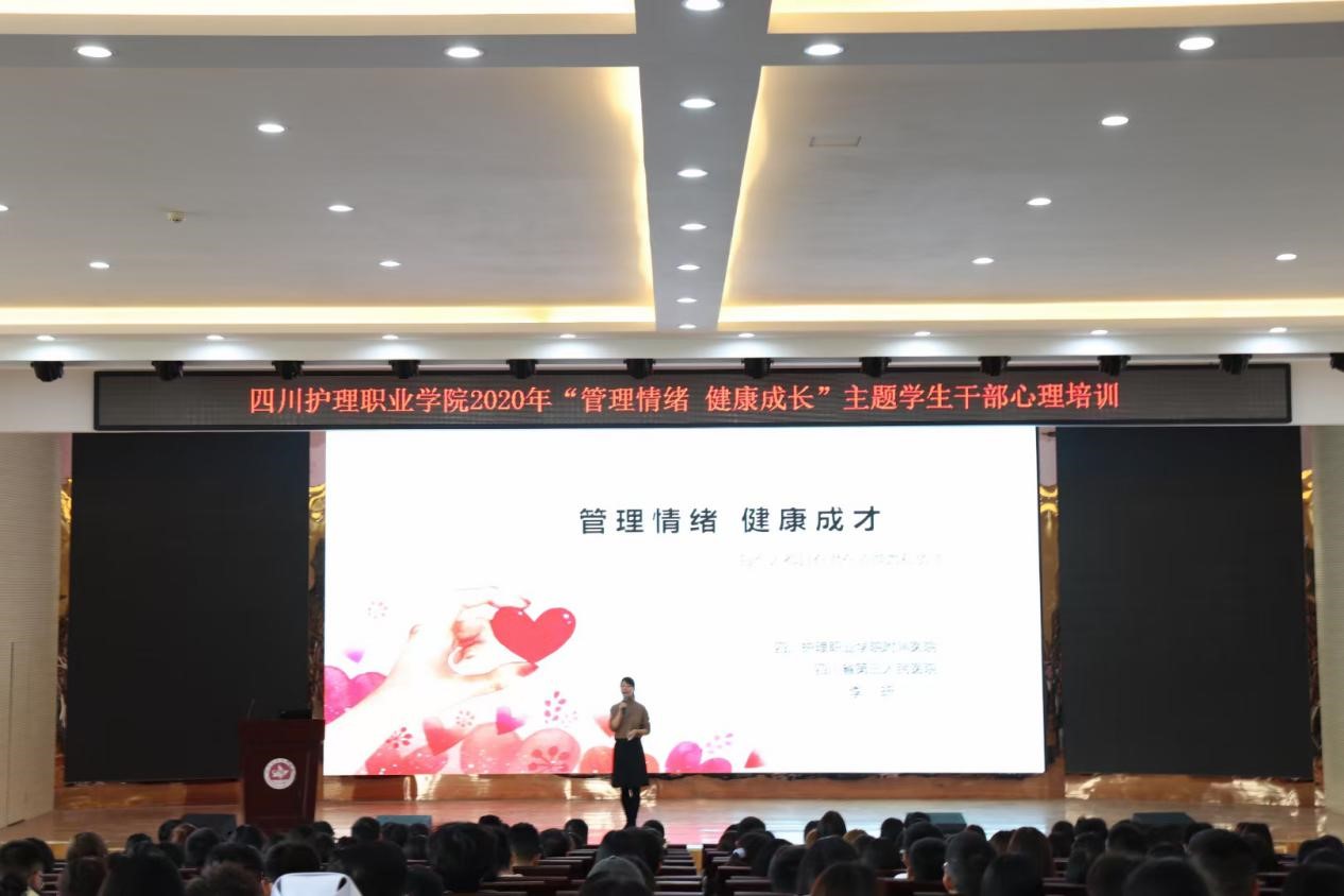 为扎实推进我院大学生心理健康教育建设,打造优质学生干部队伍,提升学生干部心理素质。院团委邀请76net必赢线路检测中心附属医院、四川省第三人民医院副主任护师李昕,于11月19日和11月26日分别于德阳、成都两校区为我院学生干部开展了以“管理情绪 健康成才”为主题的学生干部心理健康培训会。600余名学生干部和学生代表参加了本次培训会。
