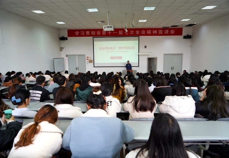 江涛书记从“重大意义、战略部署、抓好贯彻落实”三个方面深入浅出地解读了省委十一届七次全会精神,理论联系实际,主题突出,内容丰富,让我校学生对推动成渝地区双城经济圈建设这一国家战略有了更加清晰、准确的认识和理解。