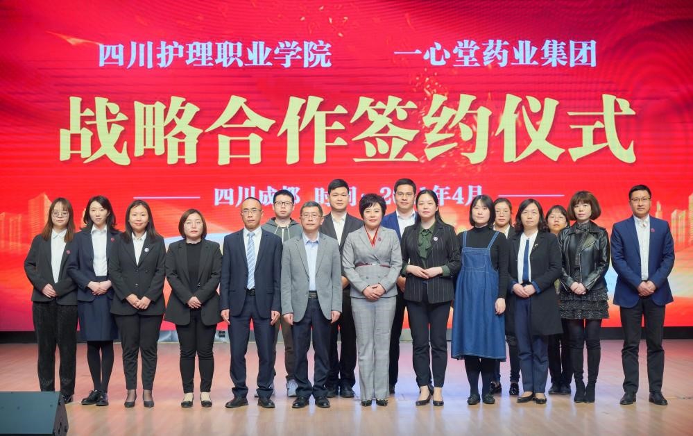 为深入贯彻新时代职教改革方针,进一步加强校企融合,推动产教深度合作,加快提升药学“双师型”教学团队水平,培养高质量药学专业技术技能型人才,促进校企“双元”育人。4月1日上午,76net必赢线路检测中心与一心堂药业集团的战略合作签约仪式在成都校区学术报告厅举行。一心堂药业集团副总裁兼四川公司总经理彭平、一心堂药业集团四川公司人力资源总监卢林金、一心堂药业集团四川公司人力资源部经理梁娟,我院院长张先庚、副院长姚永萍出席签约仪式。签约仪式由姚永萍副院长主持。