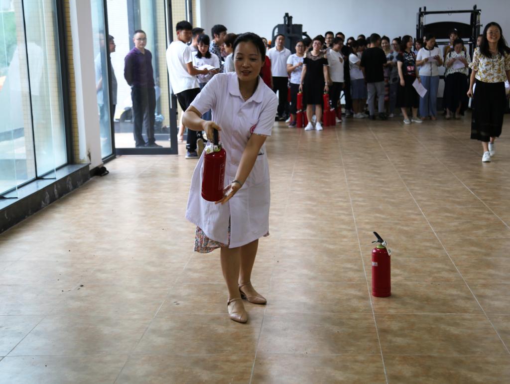 为确保活动顺利开展,学院工会、保卫处协同配合,制定了详细的培训演练方案。本次活动集中培训演示和组织教职工参加灭火器的搬运及正确使用、消火栓的正确使用、快速准确穿戴消防战斗服、担架运送“伤员”、“火场”运水五个项目的实操演练。本次活动共470人次教职工参加。