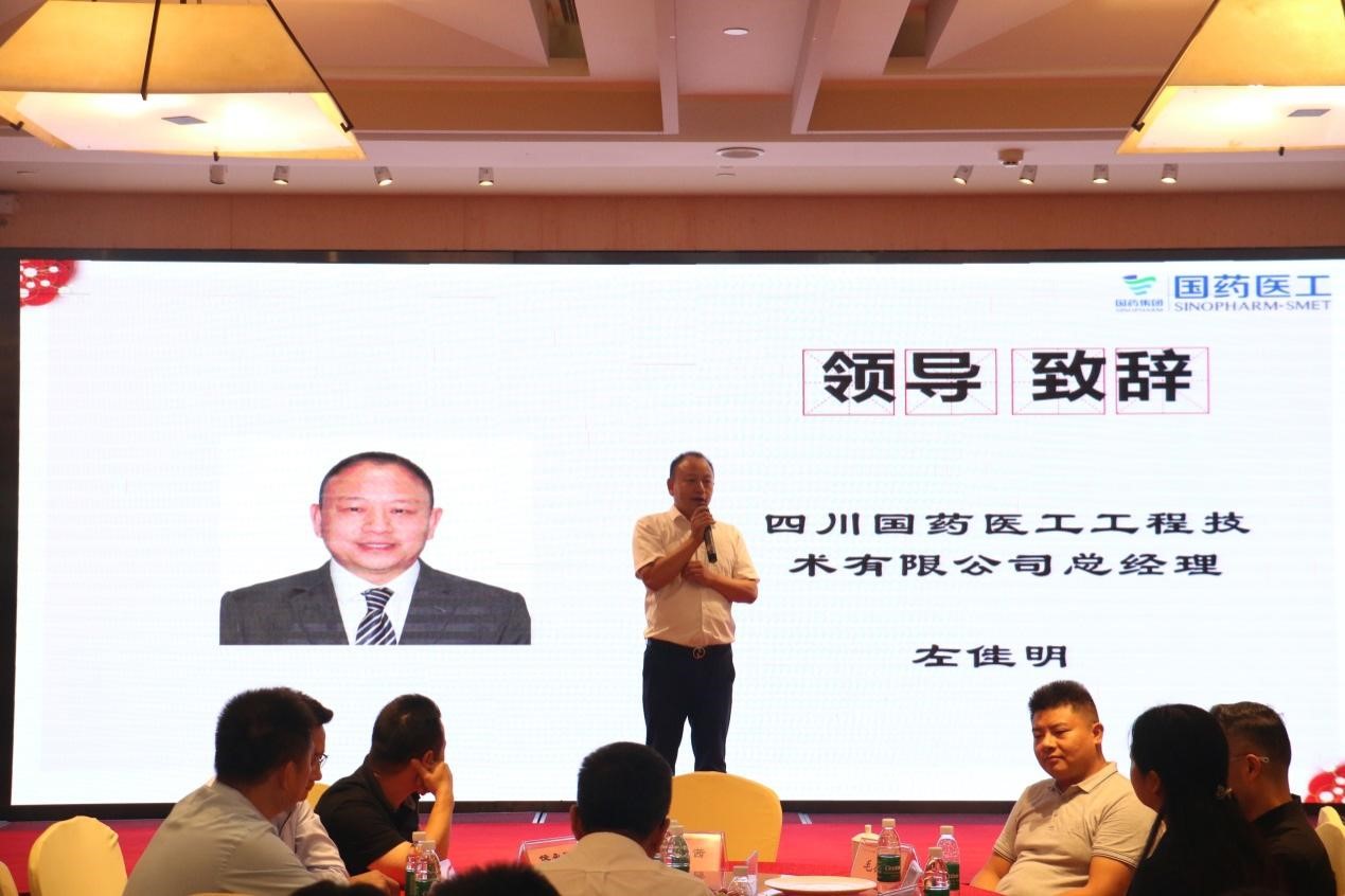 国药医工四川分公司总经理左佳明主持庆典并做了专题发言。他介绍了国药医工四川分公司成立三年来的发展情况和公司未来的发展规划。左佳明总经理表示,与我校已经开展的合作取得了阶段性的成果,在下一阶段的合作中,将考虑以订单班和现代学徒制的形式开展更深入的产教融合。