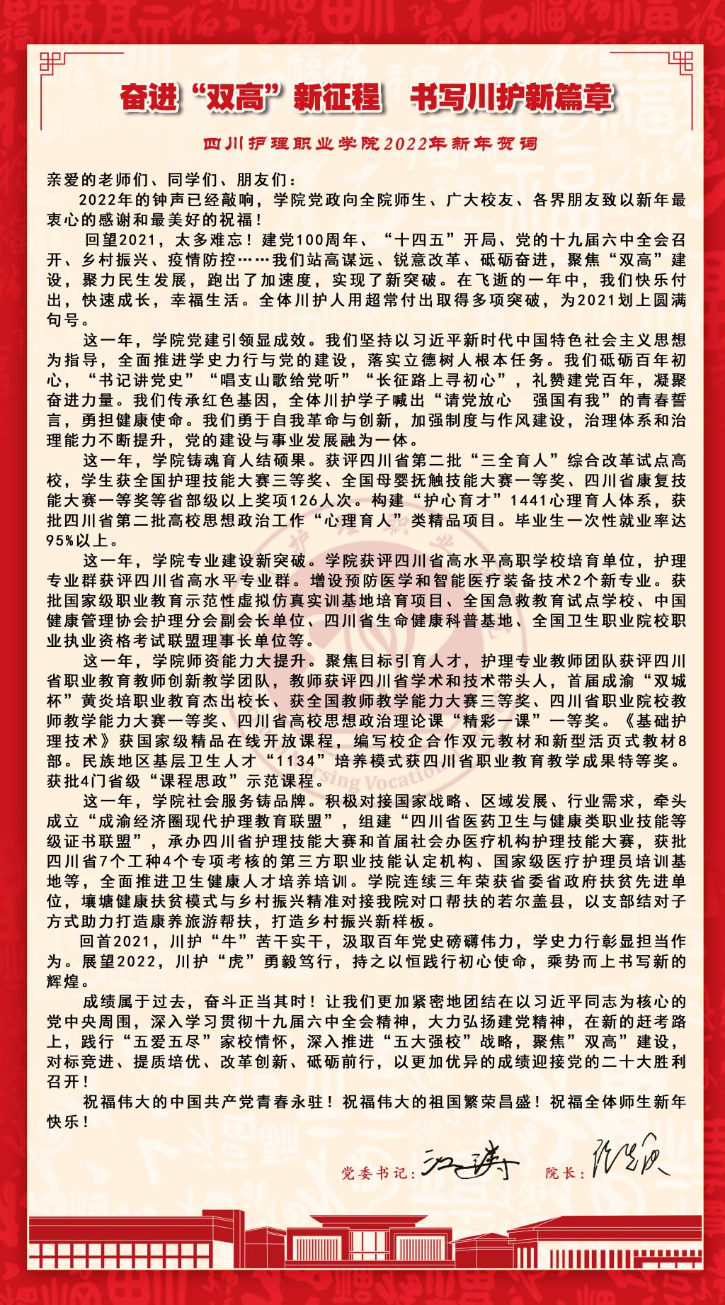 奋进“双高”新征程 书写川护新篇章——2022年新年贺词