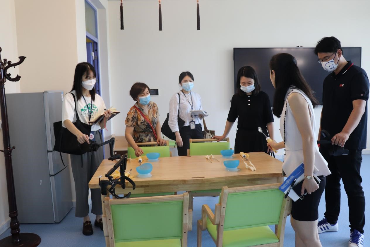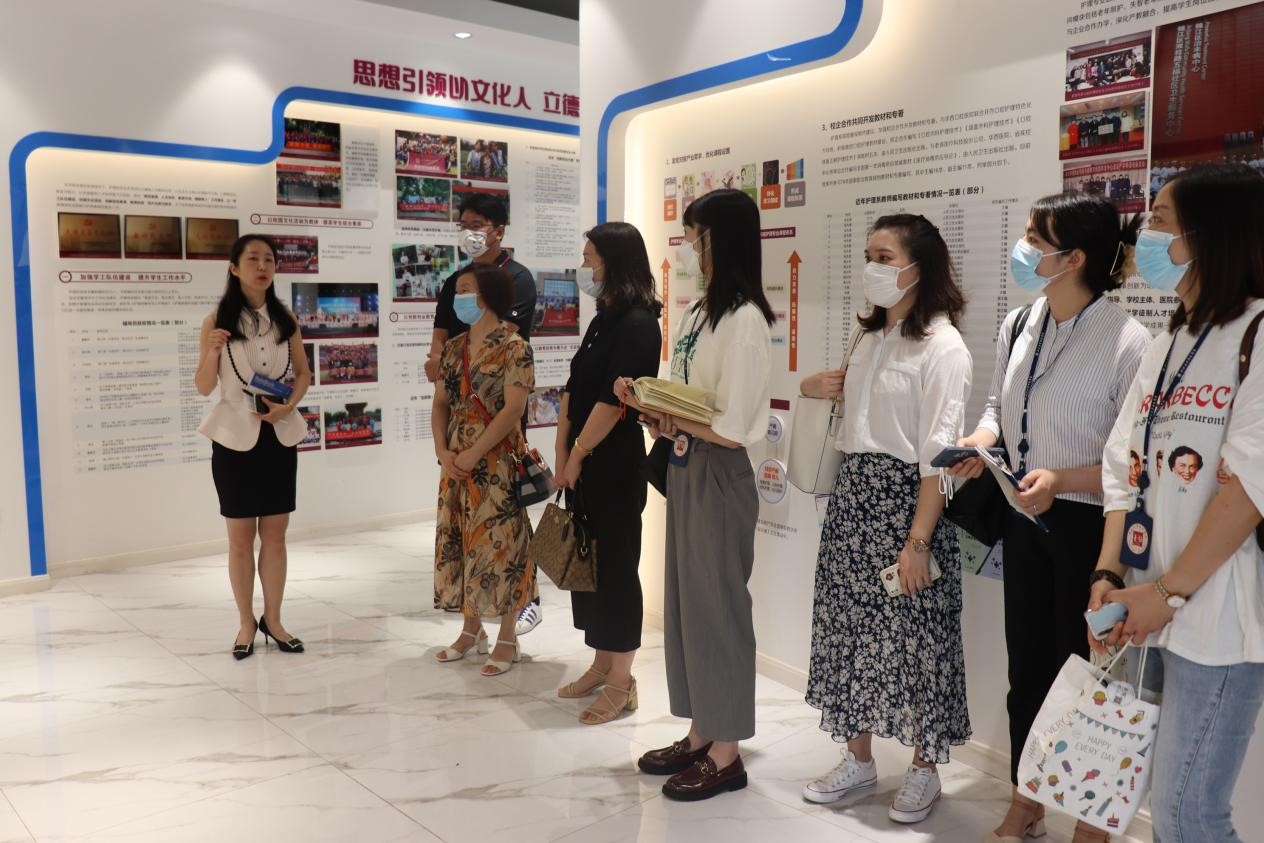 李双晶一行参观了护理实训楼的护理系陈列室、沉浸式实训室、模拟手术室、老年护理实训室、模拟产房、妇产科护理实训室、母婴餐饮制作室、儿科护理实训室、儿保早教室、急救实训室等。