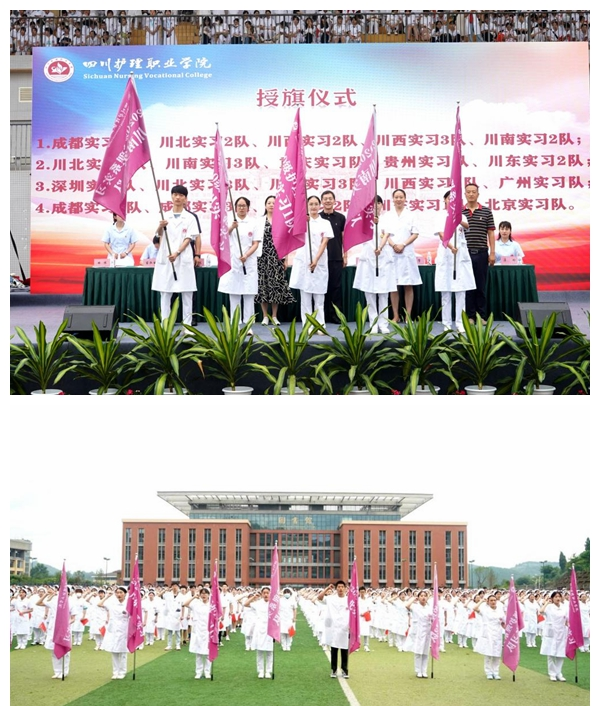 6月23日,“喜迎党的二十大 永远跟党走 奋进新征程”护理系实习生出征仪式暨技能开放日活动在学院德阳校区举行。学院党委副书记张志林、副院长姚永萍出席活动,相关部门负责人、护理系党政负责人及全系师生参加活动。