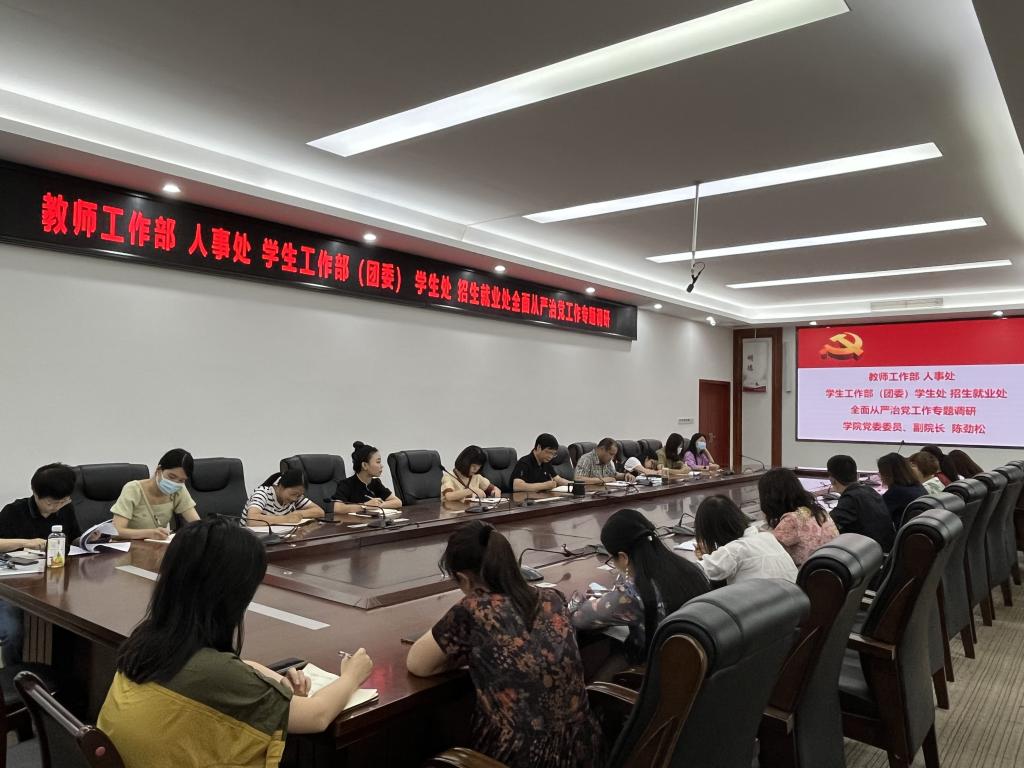 为全面贯彻新时代党的建设总要求,进一步推进学院全面从严治党工作向纵深发展,6月14日,学院党委委员、副院长陈劲松到教师工作部、人事处,学生工作部(团委)、招生就业处调研指导全面从严治党工作。