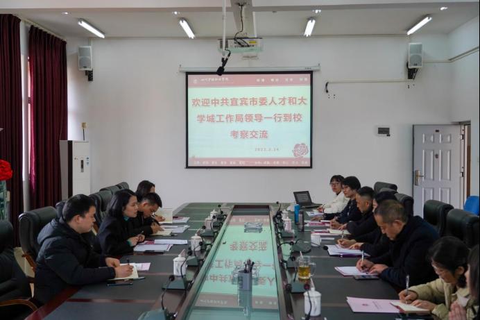 2月24日下午,中共宜宾市委组织部副部长、市委人才和大学城工作局局长谢飞一行到学院德阳校区考察交流,学院党委委员、副院长、附属医院副院长姚永萍及相关部门人员参加。