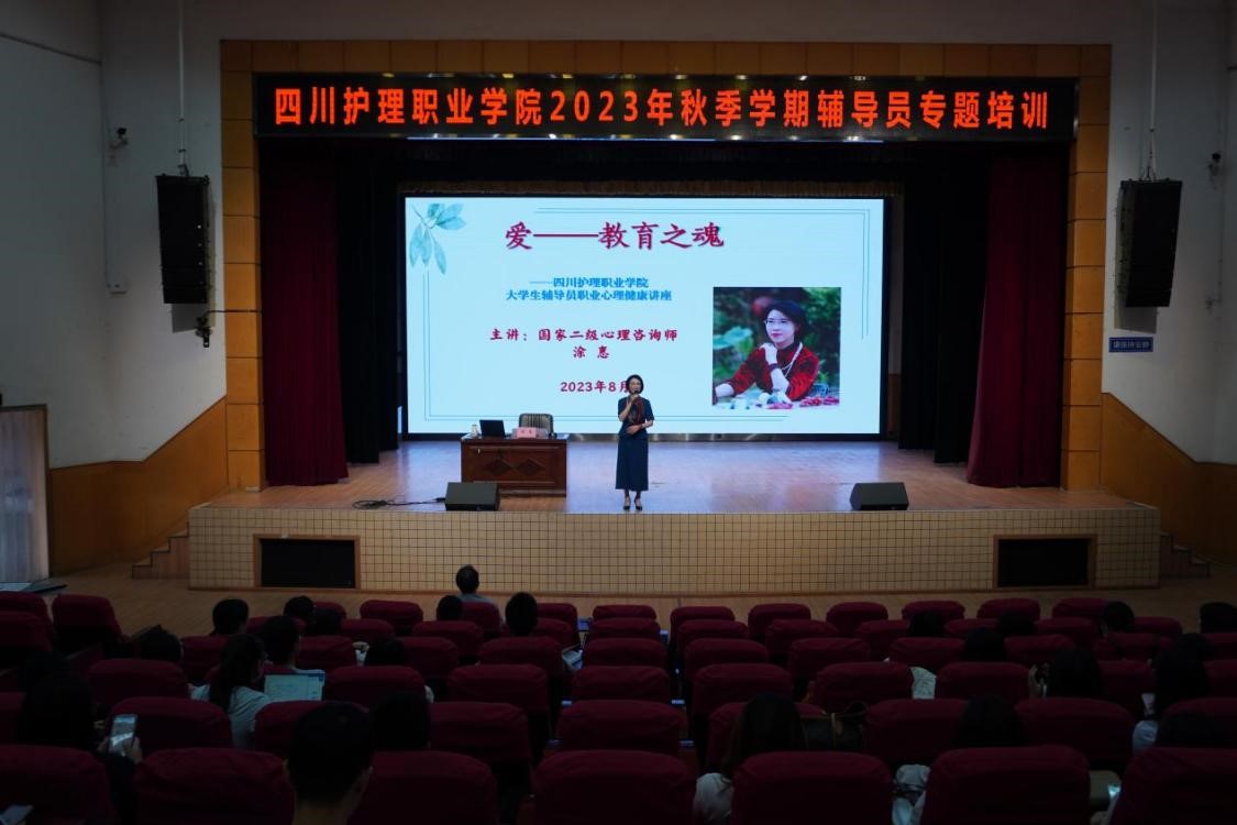 学院客座教授、国家二级心理咨询师涂惠以《爱——教育之魂》为题,指导辅导员在工作中,要注重学生的心理健康教育,做到用“心”做大学生的“三友”、用爱与责任培植正确“三观”,努力成为大学生的引路人、大学生安全的守护者和大学生成长的共同体。