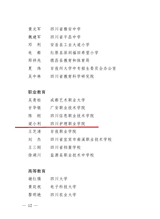 近日,四川省教育厅、四川省人力资源和社会保障厅印发《关于表彰四川省优秀教师、优秀教育工作者和教育工作先进集体的决定》,我院副院长梁小利受到表彰,