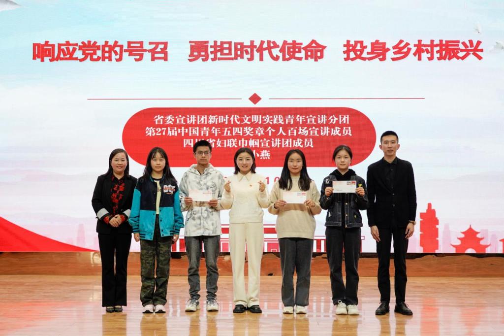 为深入学习贯彻习近平总书记来川视察重要指示精神,激发青年学生勇担时代使命、投身基层的热情。10月12日,学院邀请党的二十大代表、共青团中央常委、中国青年五四奖章获得者邓小燕到我院德阳校区专题宣讲习近平总书记来川视察重要指示精神。宣讲会采用线上线下相结合方式进行,宣传部、学生工作部、相关系部负责人及师生代表8000余人通过线上线下方式收看宣讲会。宣讲会由党委委员、副院长陈劲松主持。