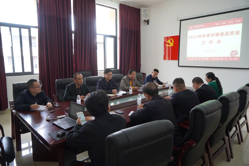 为进一步加强学院食品安全管理,10月19日,学院在德阳校区召开2023年秋季学期食品安全工作会,学院副院长陈劲松出席,后勤管理处相关人员以及超市、食堂、直饮机、水果店、扶贫专柜、自动售货机等服务商负责人参会。会议由后勤管理处副处长李智勇主持。