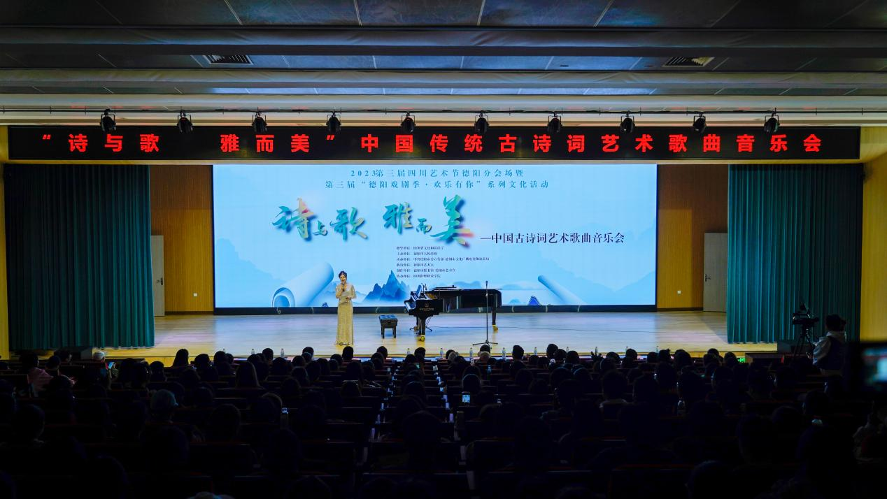 10月29日下午,由四川省文化和旅游厅指导,德阳市人民政府主办,中共德阳市委宣传部、德阳市文化广播电视和旅游局承办,学院协办的“诗与歌 雅而美”中国传统古诗词艺术歌曲音乐会在学院德阳校区演艺厅举行。
