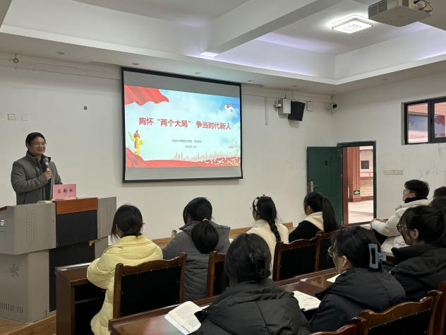 陈劲松以“胸怀‘两个大局’ 争当时代新人”为主题,围绕国际热点问题,深入分析了中国与西方国家在经济、政治、科技及社会制度上的差异,介绍了当前国际形势。他强调,作为党和国家事业的建设者和接班人,青年学子要把坚定正确政治方向摆在第一位,始终以理论清醒,保持政治坚定。他指出,只有胸怀“两个大局”、牢记“国之大者”,准确把握时代发展大势,才能找准人生方位,才能明确我们所面临的新机遇、所肩负的新使命。