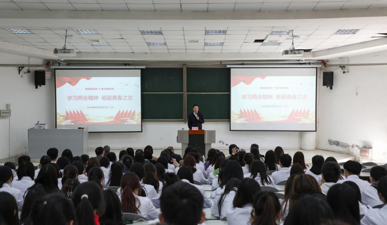 3月28日,学院党委书记江涛以2024年全国两会精神为重点,在成都校区为师生作“学习两会精神 砥砺青春之志”专题讲座。学院组织统战部、宣传部、学生工作部、国有资产处、马克思主义学院、各系部教师及辅导员代表、青马社学生代表共150余人参加学习。