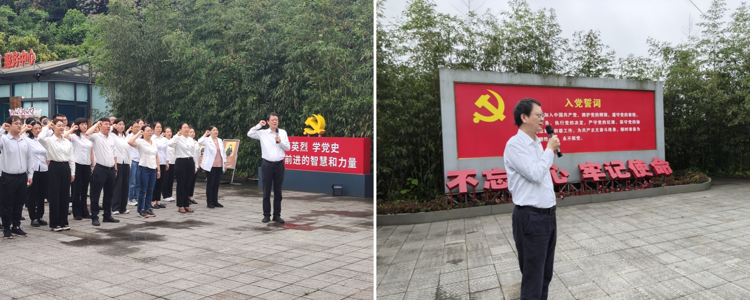 在纪念馆红色广场,全体党员同志重温入党誓词。学院党委书记江涛结合成都战役和百丈关战役讲授了关于党的纪律“微党课”,他强调了遵守党的纪律、维护党的团结的重要性,只有坚持在党的正确领导下,革命和建设才能取得胜利。