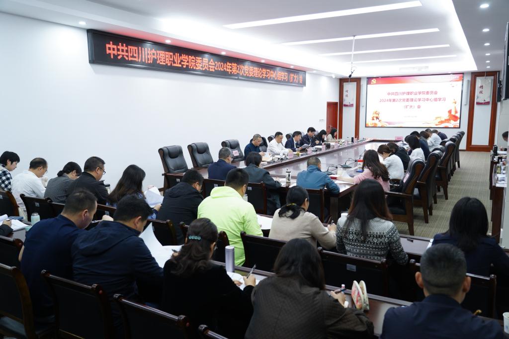4月24日、26日,学院党委在成都校区分阶段召开2024年第2次党委理论学习中心组学习(扩大)会。重点围绕党纪学习教育和总体国家安全观两个专题组织学习。学院在家领导、全体中层干部、专职组织员参加学习,会议由党委副书记彭博文主持。